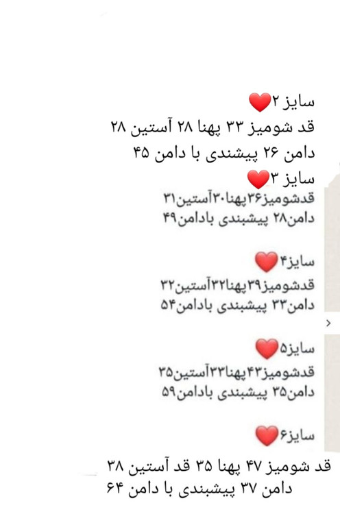 مشتری عزیز سایزبندی در توضیحات هست از روی یکی از لباسهای کودک دلبندتان اندازه بزنید و سایز دلخواهتان رو انتخاب کنید