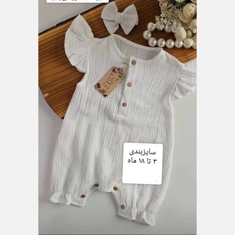 رامپر نوزادی آستین فرشته بهاره و تابستاته جنس موسلین نخ پنبه