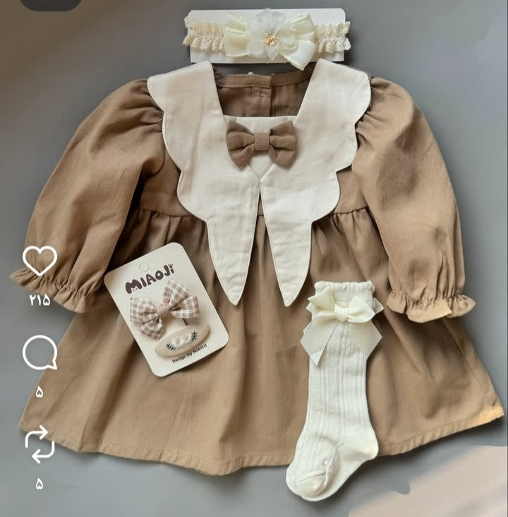 سارافون دخترانه کتان از ۶ ماه تا ۵ سال