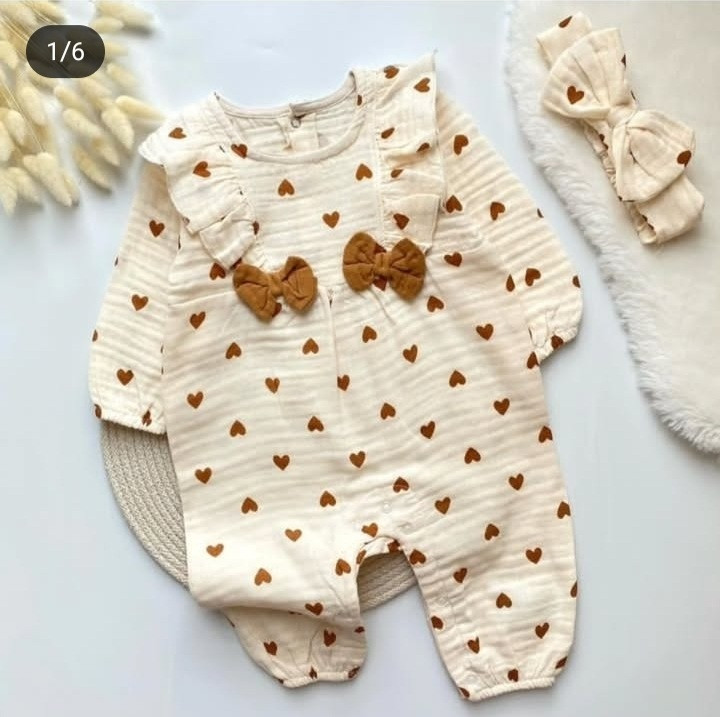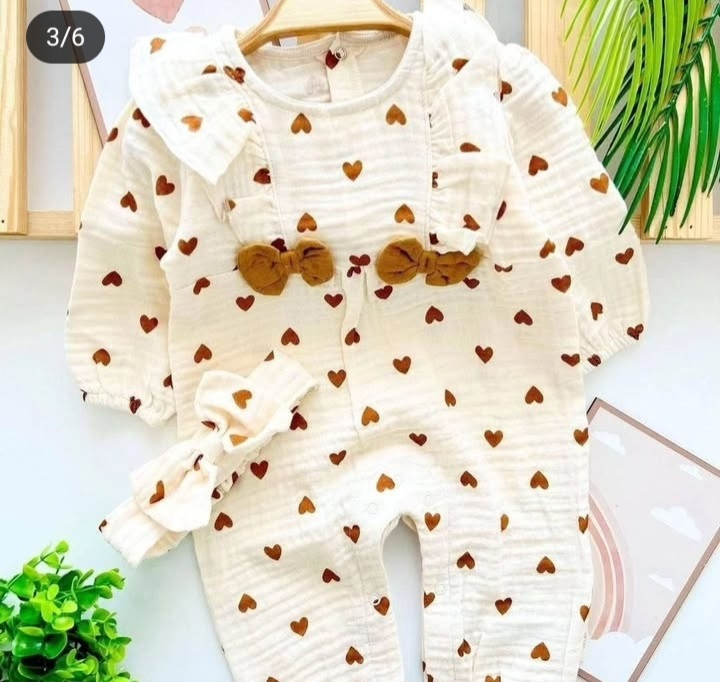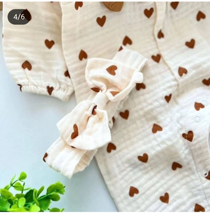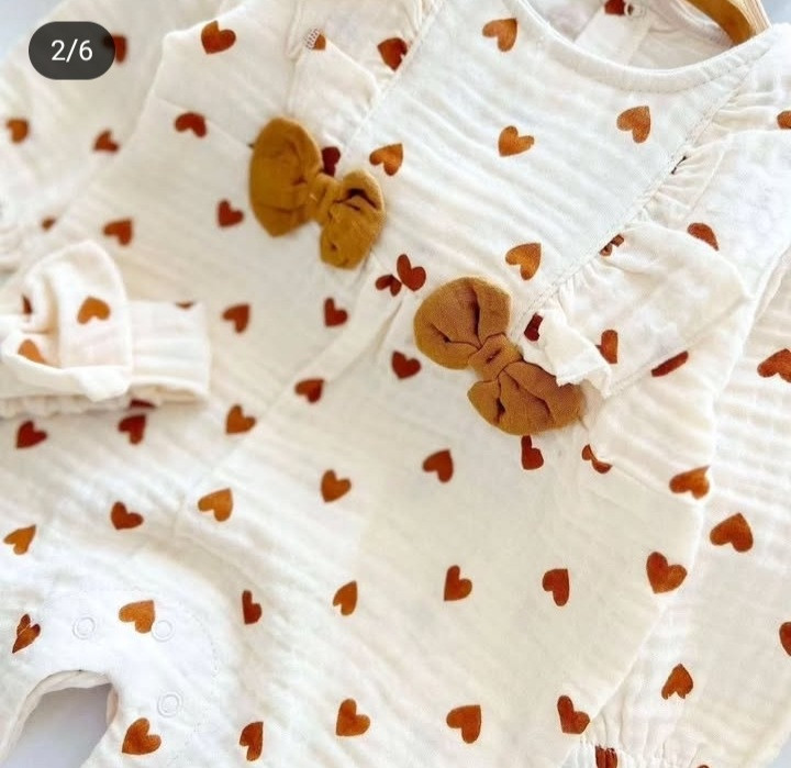ست سرهمی و هد قلب قلب نوزادی عیدانه موسلین وارداتی