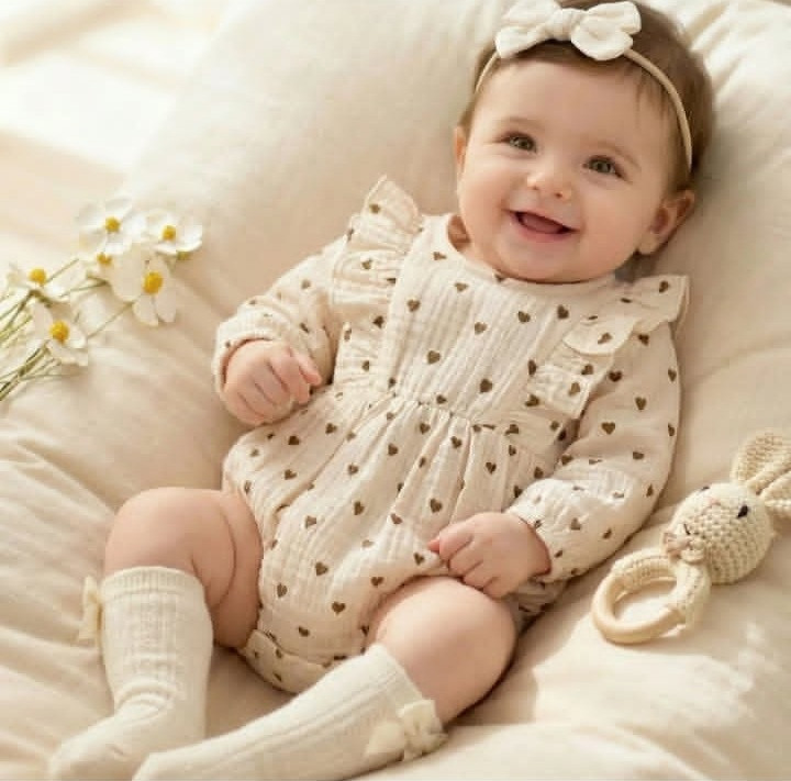 رامپر بادی نوزادی طرح قلب، یک انتخاب شیک و لطیف برای استایل روزمره و عکاسی کوچولوی شماست. پارچهی نرم و راحت، مناسب پوست حساس نوزاد بوده و طراحی ظریف آن با ریزقلبهای قهوهای ، ظاهر لباس را جذابتر میکند. این ست برای مهمانی، عکسهای یادگاری و استفاده روزانه کاملاً ایدهآل است.