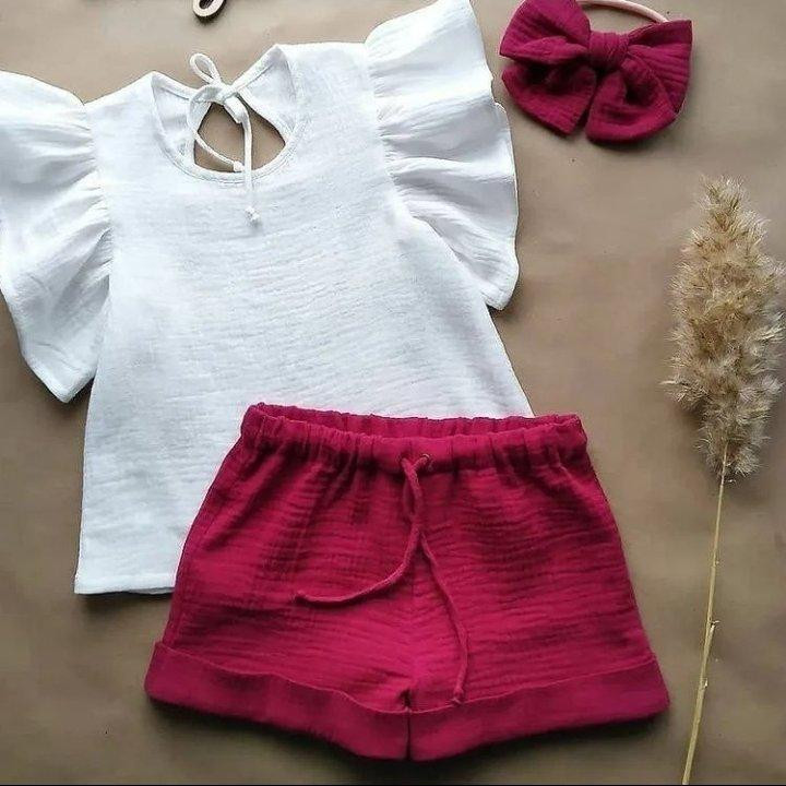 شومیز و شلوارک دخترانه تابستانه جنس ابروبادی
