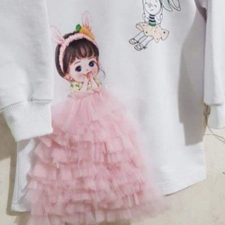 بلوز شیک دخترک دامن توری رنگ سفید تور صورتی سایز ۳۵ ۴۰ ۴۵